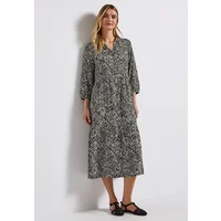 De gedessineerde volantjurk van Street One voor dames geeft een frisse draai aan je outfit met zijn grafische print. De doorlopende knoopsluiting en overhemdkraag geven een moderne twist, terwijl de zachte viscose uiterst comfortabel is om te dragen. Een elegante midi-jurk voor elke gelegenheid.