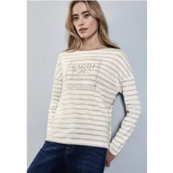 Street One Dames Gestreept shirt met folieprint in Beige Prijzen
