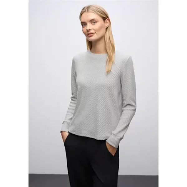 Dit Street One Shirt voor dames heeft een diagonaal structuurpatroon dat diepte geeft aan de look. De zachte stof en comfortabele manchetten maken het de ideale partner voor ontspannen outfits met stijl.