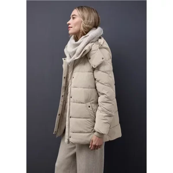 De Street One gewatteerde jas voor dames combineert warm comfort met stijlvolle details. Gebreide elementen op de kraag en mouwen zorgen voor een modieus accent en een behaaglijk gevoel. Met een verborgen ritssluiting, praktische zakken en een capuchon met trekkoord ben je perfect uitgerust voor frisse dagen.