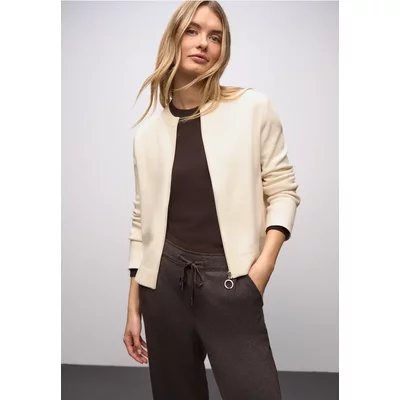 Het Street One vest voor dames combineert gebreide kleding met blouson-flair - een echte blikvanger met een zachte uitstraling. De ronde halslijn, ritssluiting en casual snit maken het een favoriet voor een knusse styling. Perfect voor je casual look.