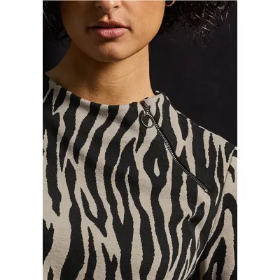 Met een grafisch jacquardpatroon en een ritssluiting aan de zijkant van de kraag is dit Street One Shirt voor dames een modieuze blikvanger. Dankzij de 3/4-mouwen en de zachte stof is het comfortabel om te dragen. Ideaal voor trendy alledaagse looks met een geraffineerd detail.