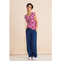 Street One jersey damestop met print, afgeronde V-hals, fijne plooien op de schouder, zachte viscose met stretchpercentage