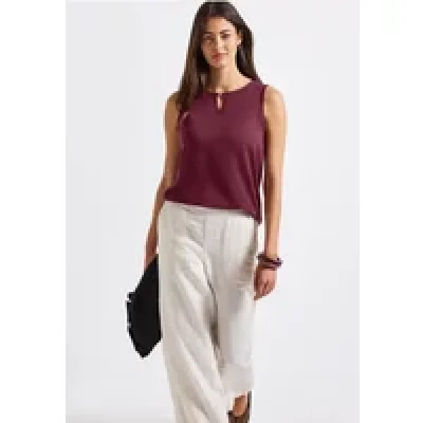 De Street One jersey top voor dames geeft uw look een moderne flair met de geraffineerde uitsnede bij de ronde halslijn. Brede bandjes en splitten aan de zijkanten benadrukken het casual silhouet, terwijl de viscosemix met stretch voor aangenaam comfort zorgt. Ideaal voor zomerse outfits met dat beetje extra.