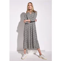 De Street One midi-jurk voor dames heeft een grafisch patroon en een ronde halslijn met split. De volants en 3/4-mouwen geven de jurk een stijlvolle touch, terwijl de zachte viscose hem comfortabel maakt om te dragen.