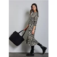 Deze midi-jurk van Street One voor dames heeft vrouwelijke volants en een grafisch patroon. De ronde halslijn met split en 3/4 mouwen zorgen voor een casual look. Door de zachte viscose is het comfortabel om te dragen - perfect voor zomerse looks.