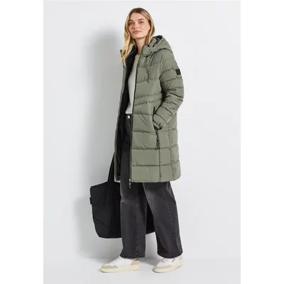 De lange gewatteerde jas van Street One voor dames houdt je behaaglijk warm op koude dagen. De zachte voering zorgt voor aangenaam comfort, terwijl een capuchon met trekkoord en zijzakken met ritssluiting praktische functies bieden. De klassieke ritssluiting maakt het functionele ontwerp van deze modieuze winterjas compleet.