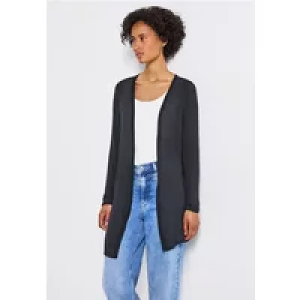 Deze lange damesjas van Street One heeft een open silhouet en een luchtige look. De licht doorschijnende jerseystof zorgt voor een comfortabele pasvorm en maakt het de perfecte laagjesstof voor milde dagen. Een stijlvolle metgezel voor dagelijks gebruik en op kantoor.