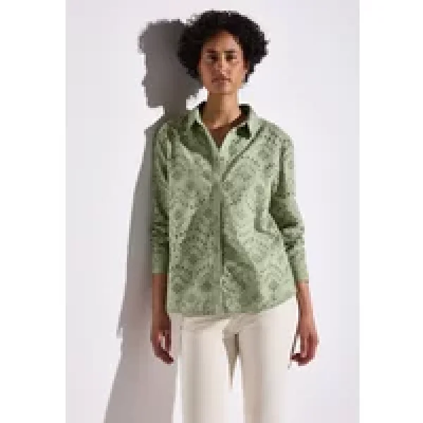 Street One Dames Overhemdblouse met oogjesborduursel in Groen