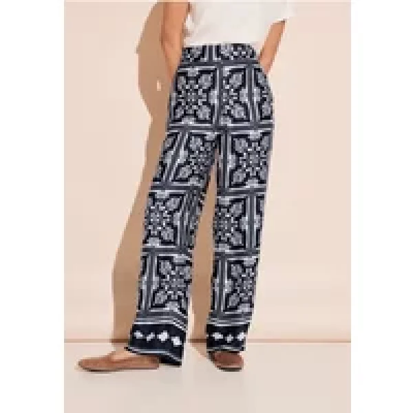 Street One Dames Satijnen broek met print in Blauw Prijzen