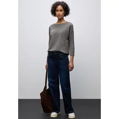 Dit Street One Shirt voor dames heeft een moderne diagonale ribstructuur en een vrouwelijke boothals. De zachte jerseystof maakt het comfortabel om te dragen, terwijl de 3/4-mouwen de look een casual finishing touch geven. Een stijlvolle allrounder voor elke dag.