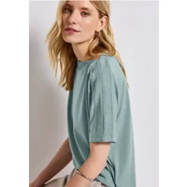 Dit Street One Shirt voor dames voegt modieuze verfijning toe met de gestructureerde boothals. De losse pasvorm met afgezakte schouders creëert een ontspannen silhouet - ideaal voor vrouwelijke casual looks.