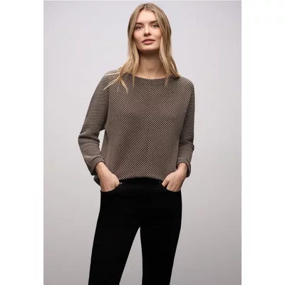 Street One Dames Shirt met structuur, tweekleurig in Bruin