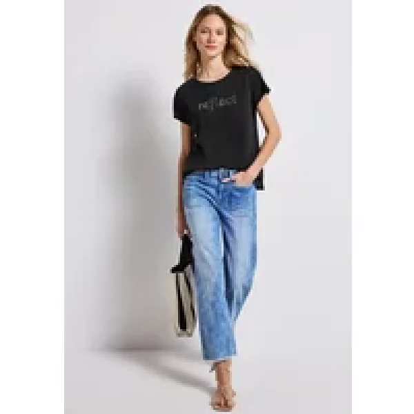 Dit damesshirt met korte mouwen van Street One zal je verblijden met zijn glitterende tekst met parels. De ronde halslijn zorgt voor een klassieke look, terwijl de zachte katoen-modaalmix het comfortabel maakt om te dragen.