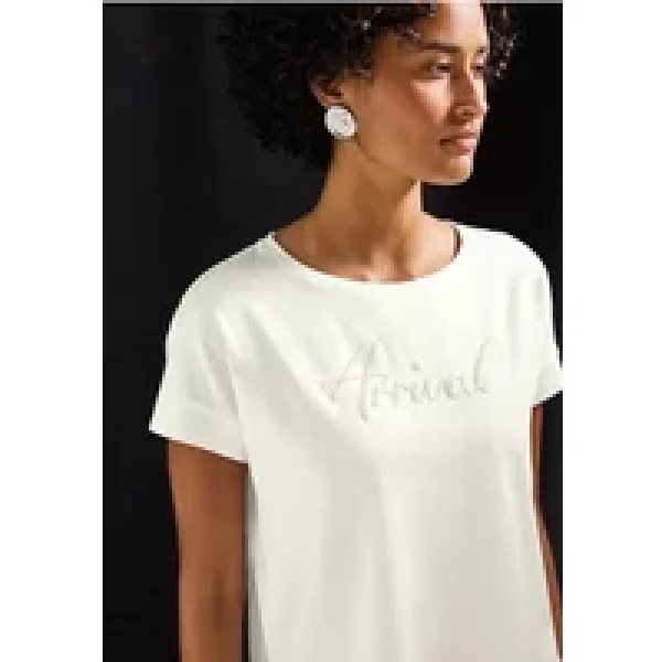 Street One Dames Shirt met tekstborduring in Wit