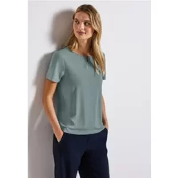 Dit Street One Shirt voor dames zorgt voor een frisse wind in je garderobe. De ronde halslijn met een geraffineerde uitsnede voegt een modieus detail toe, terwijl de zachte jerseystof in een effen kleur zorgt voor een comfortabele pasvorm. Korte mouwen en veelzijdig - ideaal voor casual zomeroutfits.