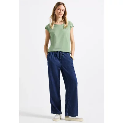 Dit mouwloze zomershirt van Street One voor dames zal je overtuigen met zijn zachte katoenen stof. De geribbelde textuurrand aan de ronde halslijn voegt een modern accent toe, terwijl het licht doorschijnende materiaal zorgt voor een zomerse luchtigheid. Perfect voor ontspannen casual looks!