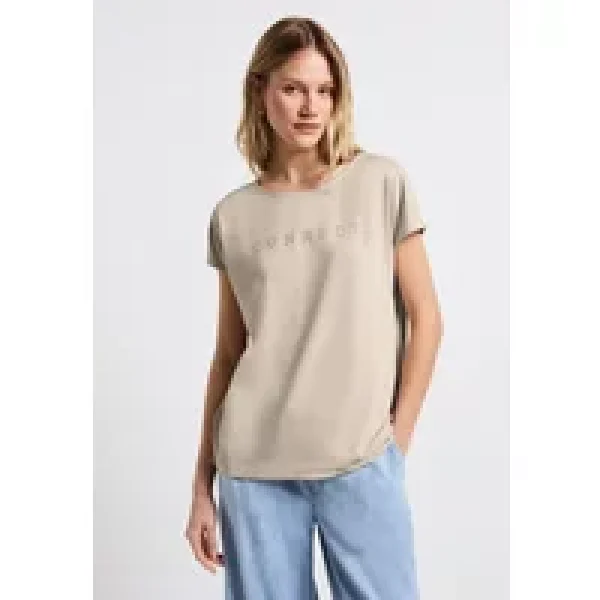 Street One Dames Silk-Look Shirt met tekst in Beige Prijzen