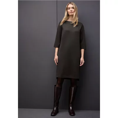 Deze knielange Sweat jurk van Street One voor dames met een boothals en 3/4-mouwen is casual en modern. De zijsplitten voegen een modieus accent toe en zorgen voor meer bewegingsvrijheid. De zachte sweatstof voelt comfortabel aan tegen de huid en maakt van deze jurk je nieuwe lievelingsstuk voor gezellige dagen.