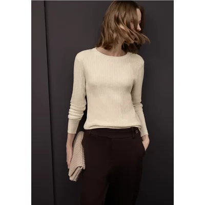 Deze fijn gebreide trui van Street One voor dames heeft een fijne geribde textuur en een verfijnde viscose/katoenmix. De ronde halslijn zorgt voor een klassiek silhouet. De comfortabele stof is bijzonder licht en zacht om te dragen. Ideaal voor slimme alledaagse looks met ingetogen elegantie.