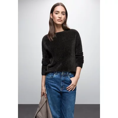 Deze Street One-trui voor dames zal u verrukken met zijn zachte verengaren en vrouwelijke uitstraling. De boothals en lange mouwen creëren een elegant silhouet met een knusse factor. Ideaal voor gezellige alledaagse momenten met een modieus tintje.