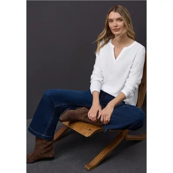 De Street One-tuniek voor dames in de Bamika-stijl maakt indruk met zijn cleane look en nonchalante snit. De gespleten hals, zijsplitten en afgeronde zoom geven het een vrouwelijke touch - een ongecompliceerde favoriet voor kantoor en vrije tijd.