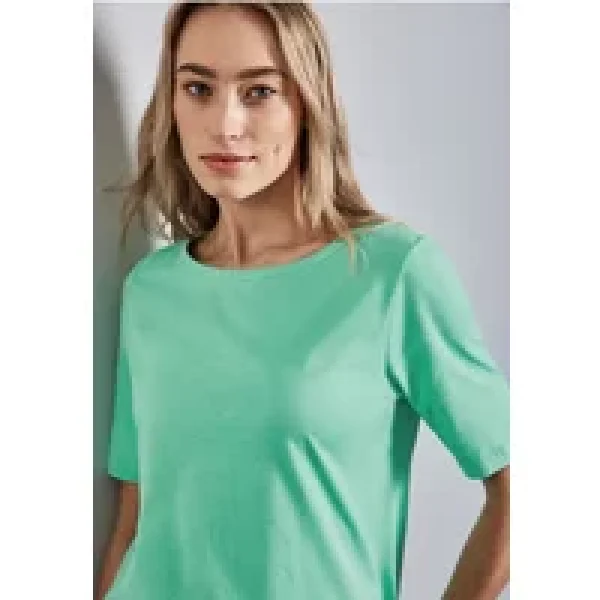Het zachte Street One-shirt voor dames is een veelzijdige allrounder gemaakt van puur katoen. Korte mouwen en een boothals maken het ideaal voor casual en vrouwelijke looks. Perfect voor elke gelegenheid.