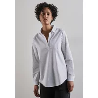 De gestreepte lange blouse van Street One voor dames heeft een overhemdkraag en een afgeronde zoom. De omgeslagen mouwen en de stretch katoenmix bieden comfort en stijl voor een zakelijke look.