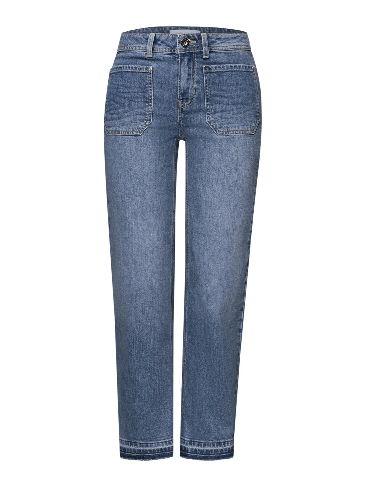 Deze Street One jeans met zoomdetail voor dames is uitgevoerd in het model Amalia in een klassieke blauwe wassing. De casual pasvorm met rechte pijpen zorgt voor een comfortabele pasvorm en een tijdloze look. De stretchkatoenen denim is comfortabel om elke dag te dragen. Opgestikte zakken zorgen voor een modieus accent.