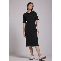 De figuurverbeterende geribde structuur geeft deze midi-jurk van Street One Studio voor dames een vrouwelijke pasvorm. Een overhemdkraag met decoratieve knoopsluiting, korte mouwen en zijsplitten geven de jurk een casual look. De katoenmix met stretch maakt hem comfortabel en behaaglijk.