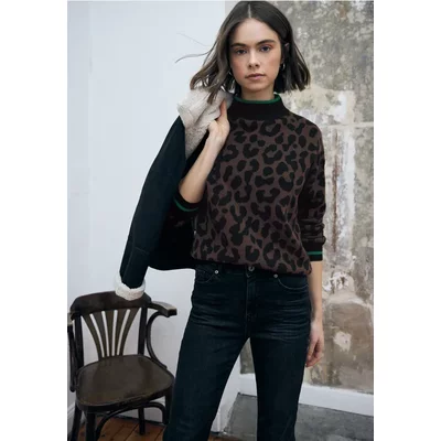 De zachte Leo jacquardtrui van Street One Studio combineert een trendy dierenprint met sportieve college-details. De col en geribde boorden aan de mouwen benadrukken de casual look. Een highlight voor stijlvolle street styles.