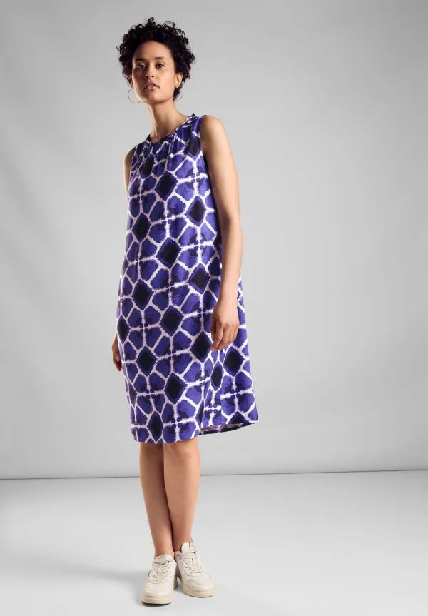 Damesjurk met print van Street One, mouwloos, knielengte, ronde hals met plooien, split en knoop in de nek, zachte viscosekwaliteit