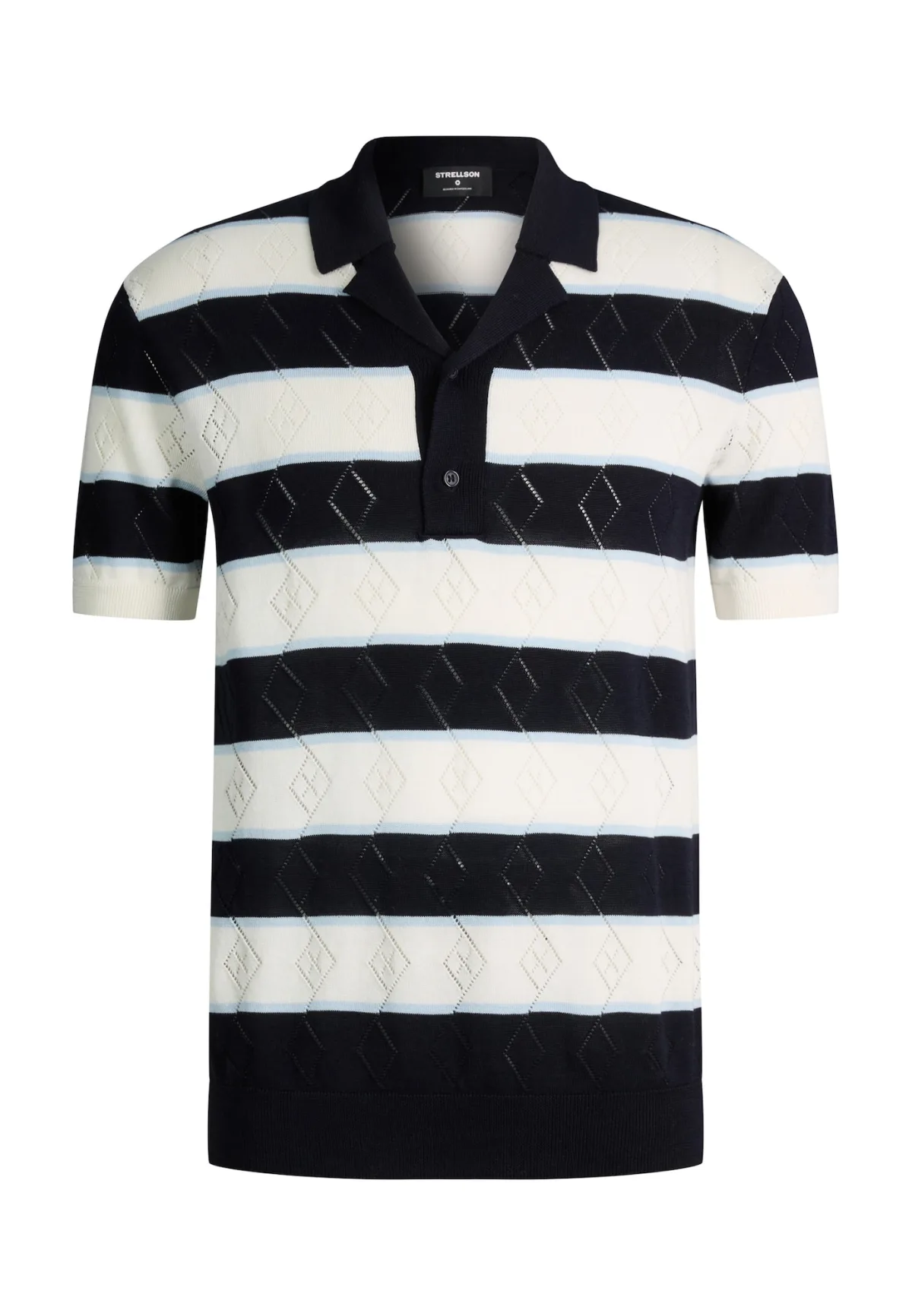 Design: Revers kraag, Geribd ceintuurtje, Knop sluiting; Type sluiting: Knoopsluiting; Materiaal: Jersey; Halstype: Polokraag; Motief: Gestreept; Extra's: All-over patroon, Op staal naden; Pasvorm: Normale pasvorm; Armlengte: Kwartmouw; Lengte: Normale lengte