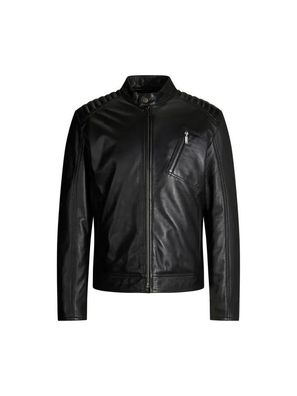 Design: Drukknopsluiting, Ritssluiting, Mouw rits, Staande kraag, Ritszakken aan de zijkant; Type sluiting: Ritssluiting; Type jas: Bikerjack; Voering: Niet gevoerd; Materiaal: Leer; Motief: Effen; Extra's: Stiksels, Op staal naden; Pasvorm: Normale pasvorm