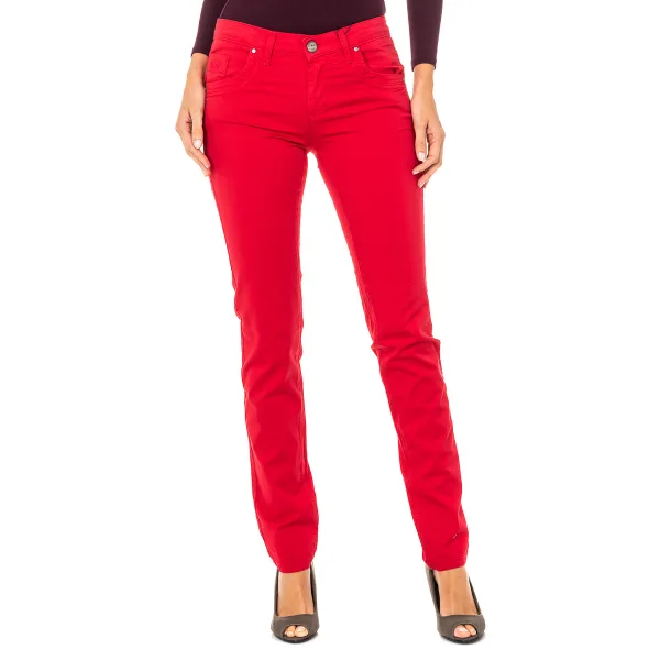 Stretchbroek, elastiek. Rode kleur Laag met skinny snit. Knoop- en ritssluiting. Twee zakken aan de voorkant en minizakje met geborduurd merklogodetail. Twee open zakken op de achterkant. Riemlussen. Naden in toon zichtbaar. Samenstelling: 97% Katoen - 3% Elastaan Wasvoorschriften: - Maximaal wassen op 40ºC. - Strijken op gemiddelde temperatuur, max. 110 ° C. - Droger mag gebruikt worden. - Geen bleekmiddel gebruiken. - Kan niet chemisch gereinigd worden. Samenstelling: 97% Katoen, 3% Elastaan Onderhoud: - Maximaal wassen op 40ºC. - Strijken op gemiddelde temperatuur, max. 110ºC. - Kan in de droger. - Geen bleekmiddel gebruiken. - Kan niet chemisch gereinigd worden.