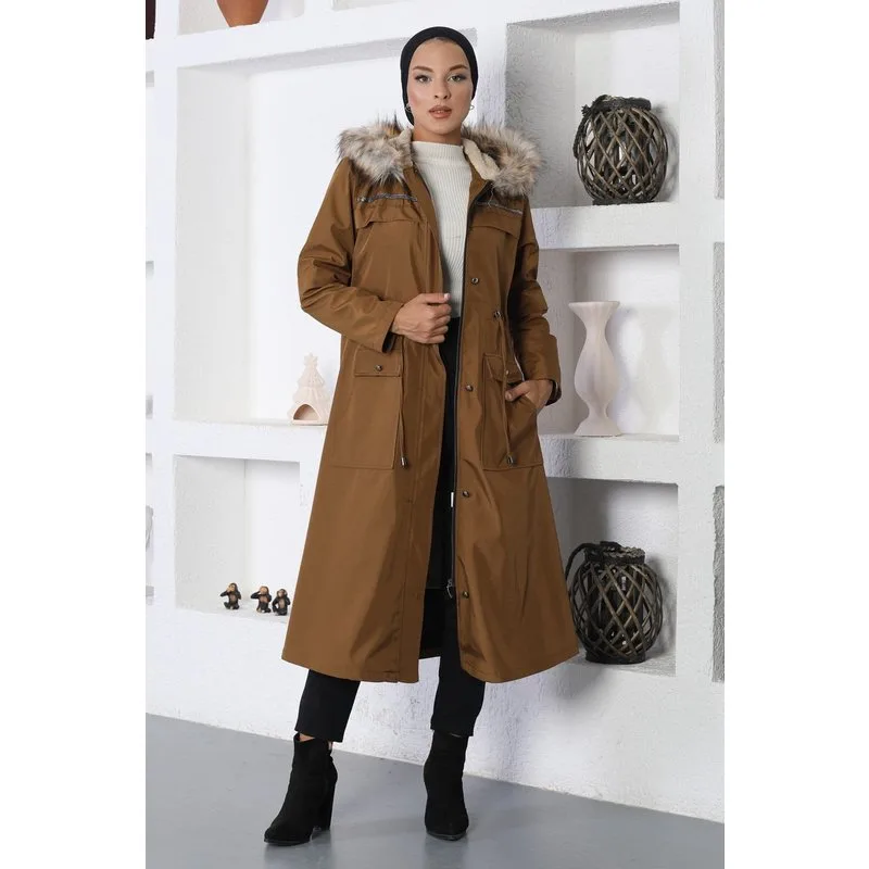 Stofkenmerk: Gemaakt van Bondit-stof. Productkenmerk: Nieuwe seizoenshijab modeproduct. Bont gevoerd. Voorzien van een rits. Beschikbaar met zakken. Met capuchon. Vastgebonden in de taille. Productkleur kan variëren door conceptfoto's. Model draagt maat 38. Maat 38 Jassenmetingen: Productlengte: 116 cm - Borst: 102 cm - Taille: 96 cm - Heupen: 108 cm. Lichaamsmaten nemen met 3 of 4 cm toe. (Productlengte verandert niet)