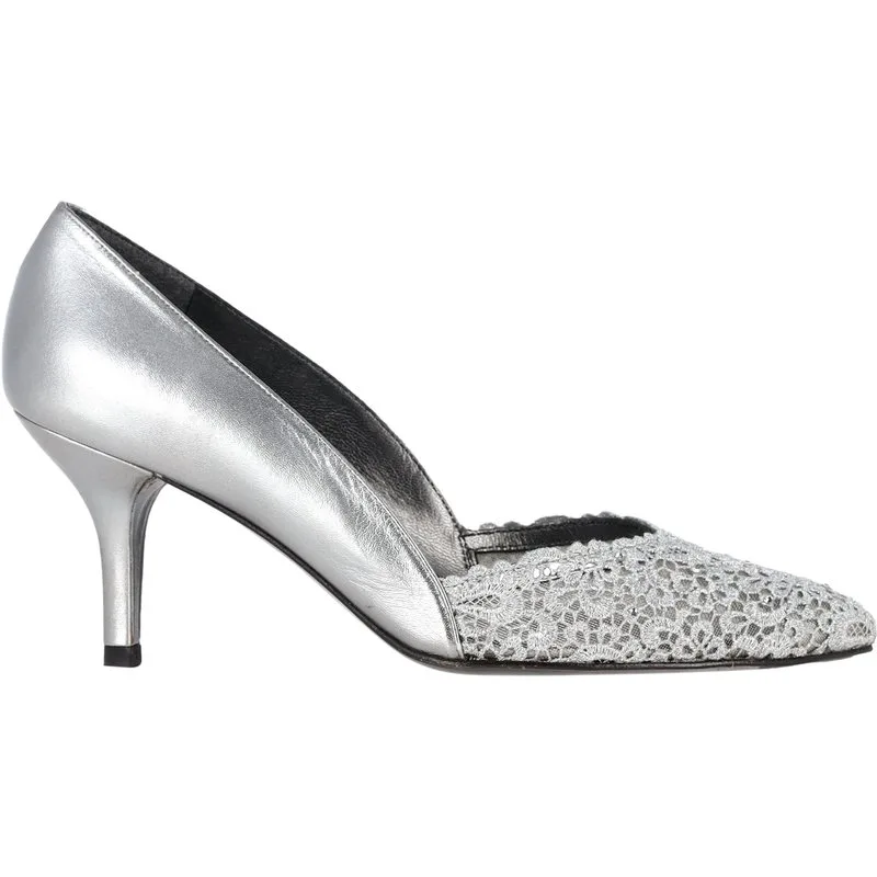 Stuart Weitzman Chantelle Kant Teeen Pumps in Zilver Leer Prijzen