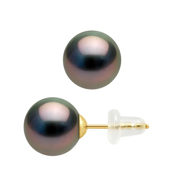 Oorbellen Echte gekweekte parels van Tahiti Ronde 8-9 mm - Kwaliteit A + - siliconen System Kinderwagens - Captive-allergeen en 100% - Yellow Gold 375 duizendste - 2 jaar garantie op fabricagefouten - Geleverd in hun presentatie geval met een Certificaat van Echtheid en een internationale garantie - Al onze juwelen zijn gemaakt in Frankrijk.