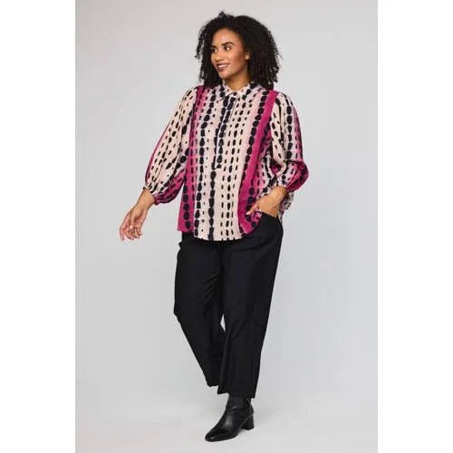 Deze roze STUDIO dames blouse is een lichte en luchtige tuniek die direct een vrouwelijke uitstraling geeft. De all over print zorgt voor een speels effect, terwijl de klassieke kraag en knoopsluiting juist wat extra rust en structuur brengen. Gemaakt van 100% viscose voelt de stof soepel aan op de huid en valt de blouse mooi langs je lichaam. De driekwart mouwen met rechte mouwinzet maken dit een fijne keuze voor het voorjaar en voor dagen waarop je net iets meer bedekking wilt.Details die het verschil maken Gemaakt van 100% viscose, een soepele stof met een zachte touch All over print in roze tinten voor een frisse, vrouwelijke look Klassieke kraag en volledige knoopsluiting aan de voorzijde Driekwart mouwen met rechte mouw voor een ontspannen pasvorm Tuniekmodel dat mooi over de heupen valt Onderdeel van het grote maten assortimentComfortabele tuniek voor elke dagDe tuniek lengte maakt deze blouse ideaal op een smalle broek of legging. De soepele stof beweegt gemakkelijk met je mee, wat prettig is tijdens een drukke dag op werk, een etentje of een dagje uit. Door de knoopsluiting kun je de halsopening eenvoudig aanpassen naar wat jij prettig vindt.STUDIO: modieuze styles in grote matenSTUDIO richt zich op modieuze kleding in grotere maten met aandacht voor pasvorm en draagcomfort. De ontwerpen volgen de trends, maar blijven tegelijkertijd praktisch en prettig in het dagelijks leven. Zo kun je rekenen op kleding die goed voelt, mooi valt en aansluit bij jouw stijl.Een fijne, luchtige blouse die je graag uit de kast pakt zodra het voorjaar zich laat zien.