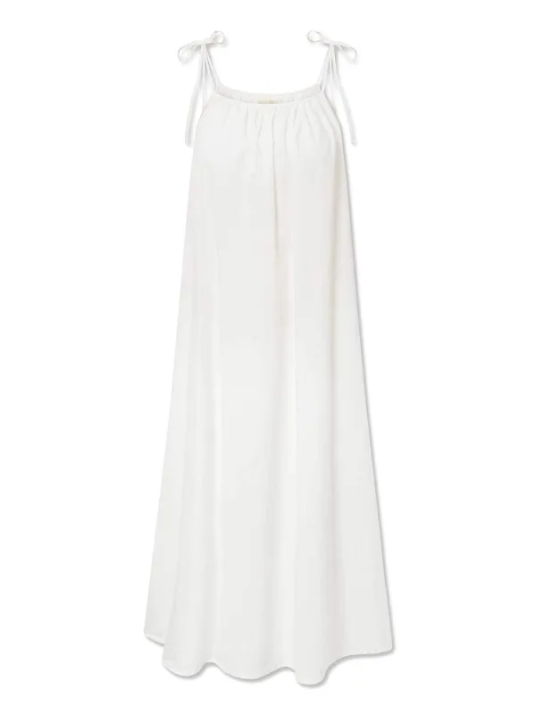 Design: A-lijn, Ingelegde zoom/rand, Om te knopen/binden; Type sluiting: Snoersluiting; Materiaal: Katoen; Halstype: Ronde hals; Motief: Effen; Soort bandjes: Spaghettibandjes; Details: Gedrapeerd; Extra's: Lichte stof, Voelt zacht aan; Lengte: 7/8 lengte; Pasvorm: Losse pasvorm; Armlengte: Mouwloos