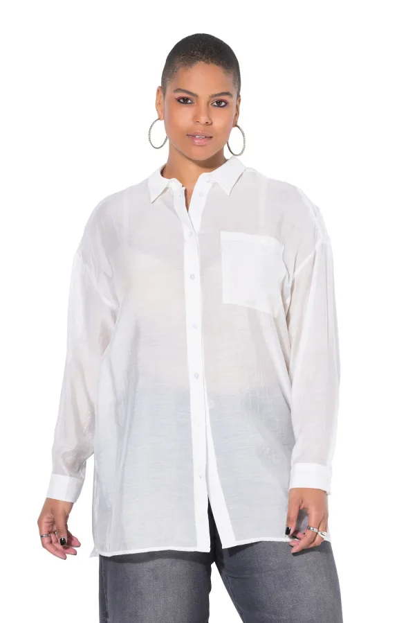 Blouse type: Klassieke blouse; Design: 1-knoops manchetten, Gevoerde zoom/rand, Oversized, Overcut schouder, Borstzak; Type sluiting: Knoopsluiting; Materiaal: Viscose; Motief: Effen; Kraag: Kentkraag; Details: Kant, Sierstenen; Extra's: Licht transparant; Pasvorm: Losse pasvorm; Armlengte: Lange mouw; Lengte: Lange pasvorm