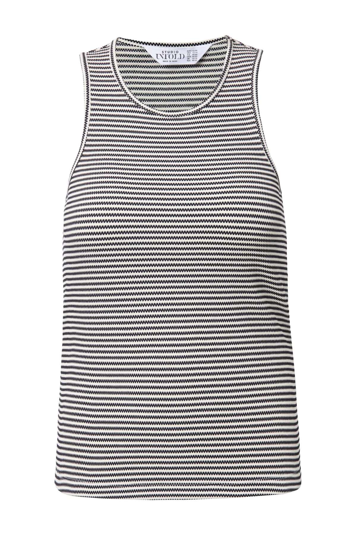 Design: Elastische inserts; Materiaal: Jersey; Halstype: Ronde hals; Motief: Gestreept; Extra's: All-over patroon; Pasvorm: Normale pasvorm; Armlengte: Mouwloos; Lengte: Normale lengte