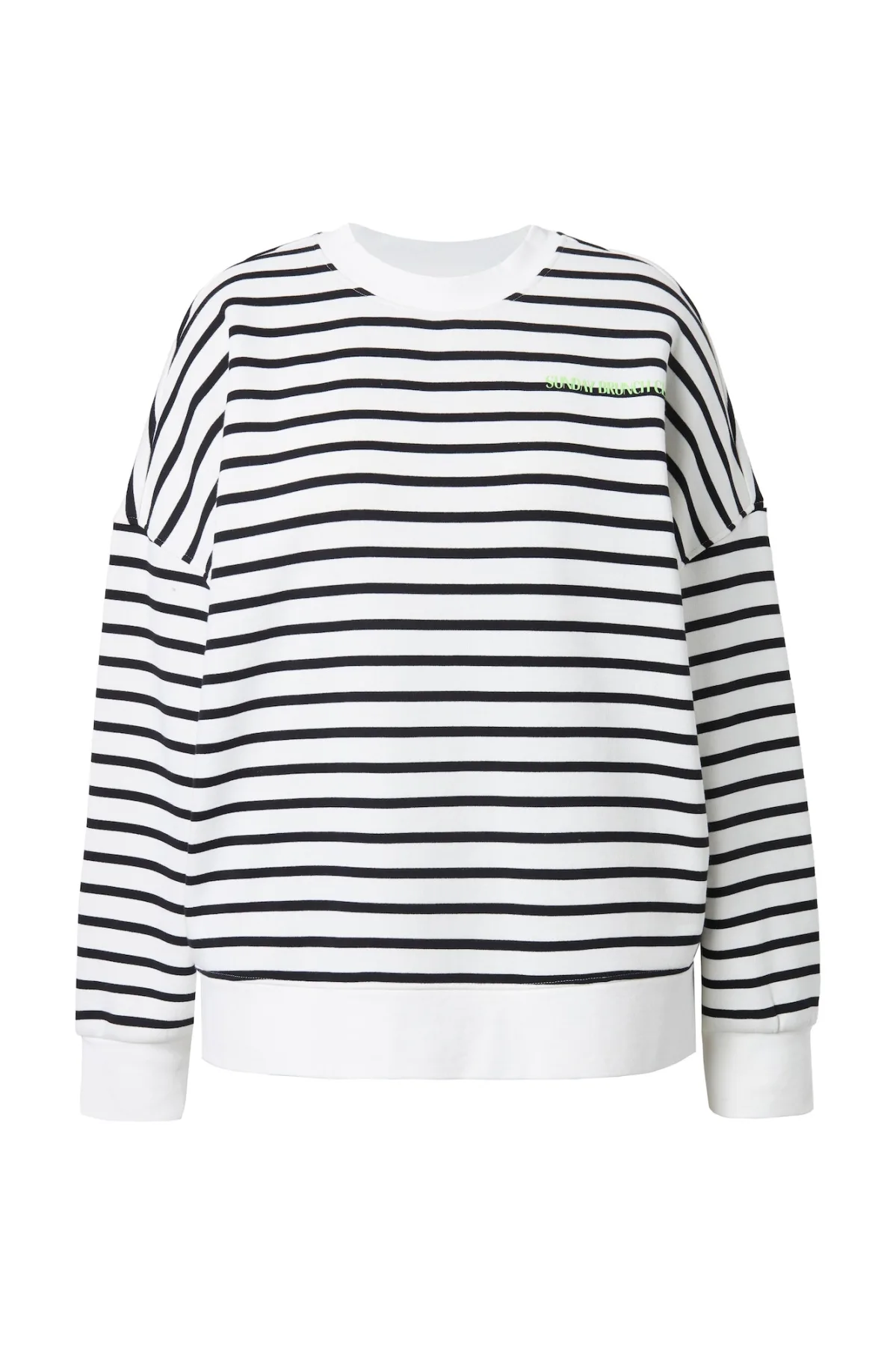 Design: Gevoerde zoom/rand, Geribd ceintuurtje; Type sluiting: Slip; Materiaal: Sweatstof; Halstype: Ronde hals; Motief: Gestreept; Extra's: Voelt zacht aan; Pasvorm: Losse pasvorm; Armlengte: Lange mouw; Lengte: Normale lengte