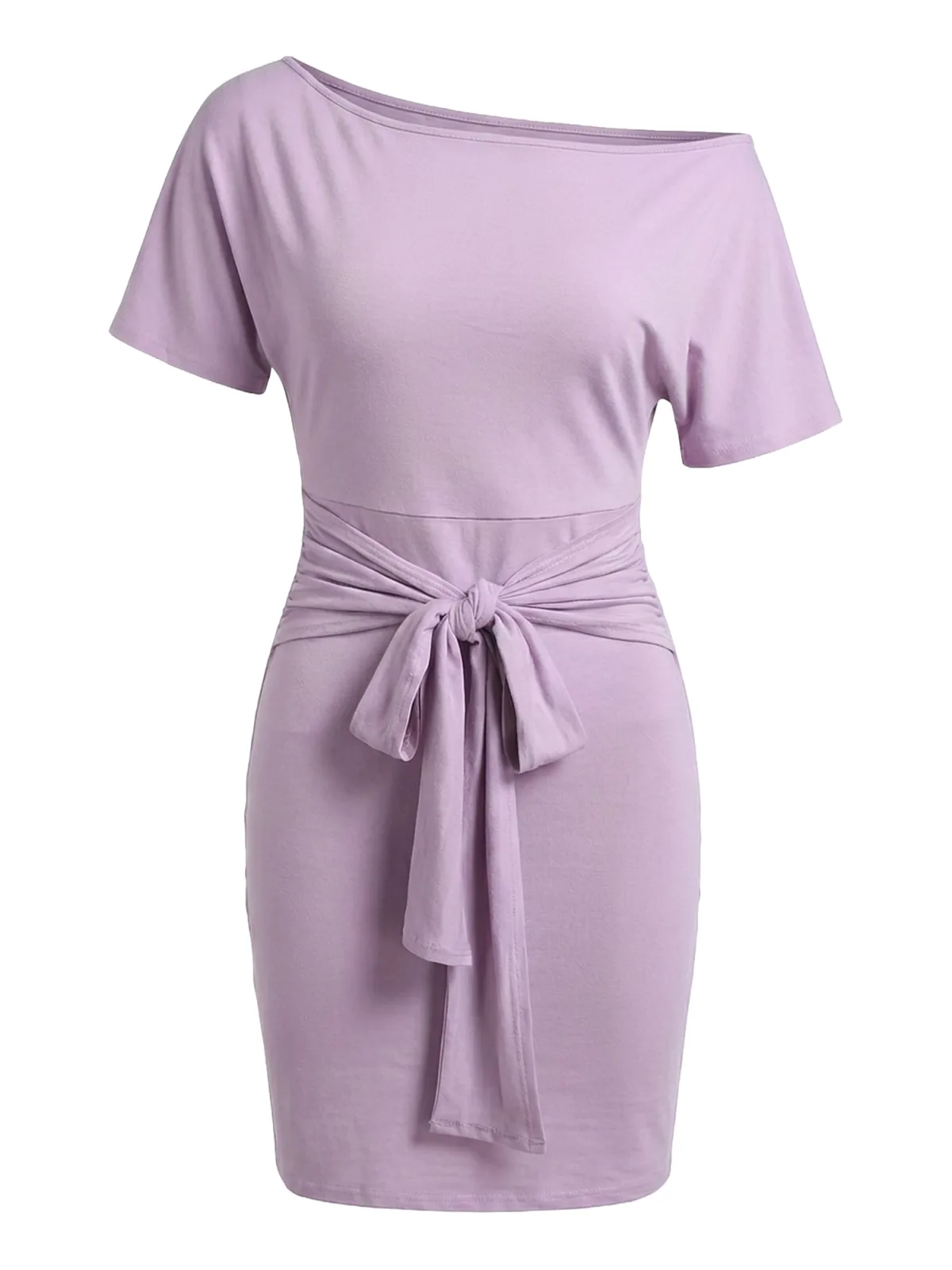Design: Gevoerde zoom/rand, Rechte zoom, Om te knopen/binden, Ingelegde kraag; Materiaal: Jersey; Motief: Effen; Details: Gedrapeerd; Extra's: Op staal naden, Voelt zacht aan; Lengte: Kort/mini; Snit: Getailleerd; Pasvorm: Slanke pasvorm; Armlengte: Kwartmouw