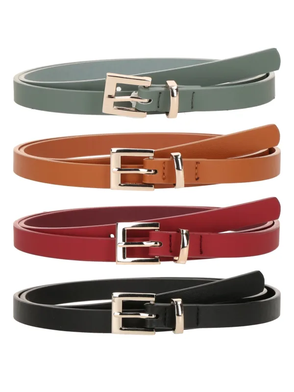 Design: Rechte zoom, Gespsluiting; Type sluiting: Gesp; Materiaal: Imitatieleder; Motief: Effen; Materiaal: Imitatieleer; Type riem: Smalle riem; Extra's: Gladde stof; Aantal: 4 Pack