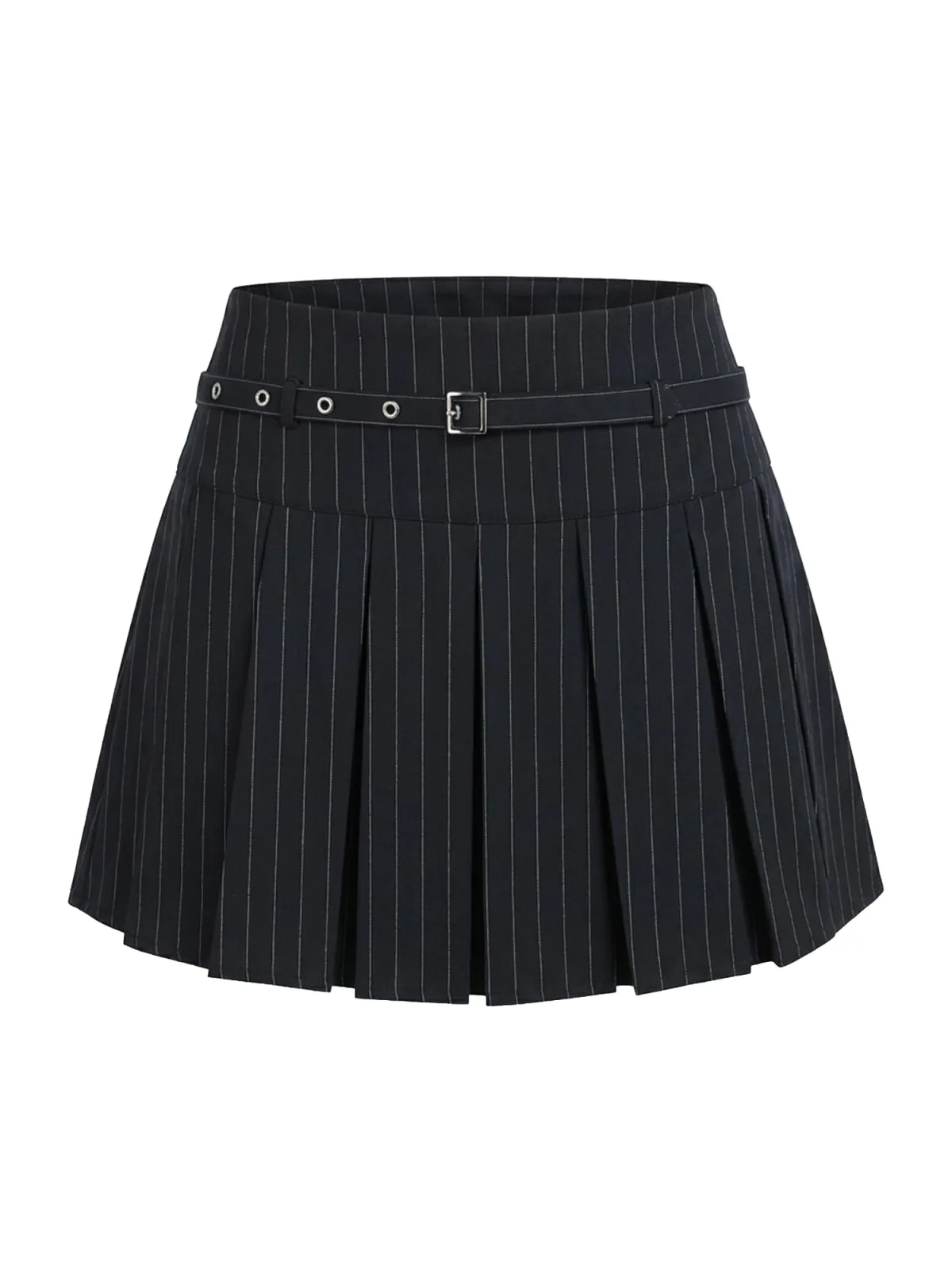 Design: Wijde taille, Tailleriem; Motief: Krijtstrepen; Rokvorm: Plooirok; Details: Plissé; Extra's: All-over patroon, Riemlussen; Lengte: Kort/mini; Pasvorm: Normale pasvorm