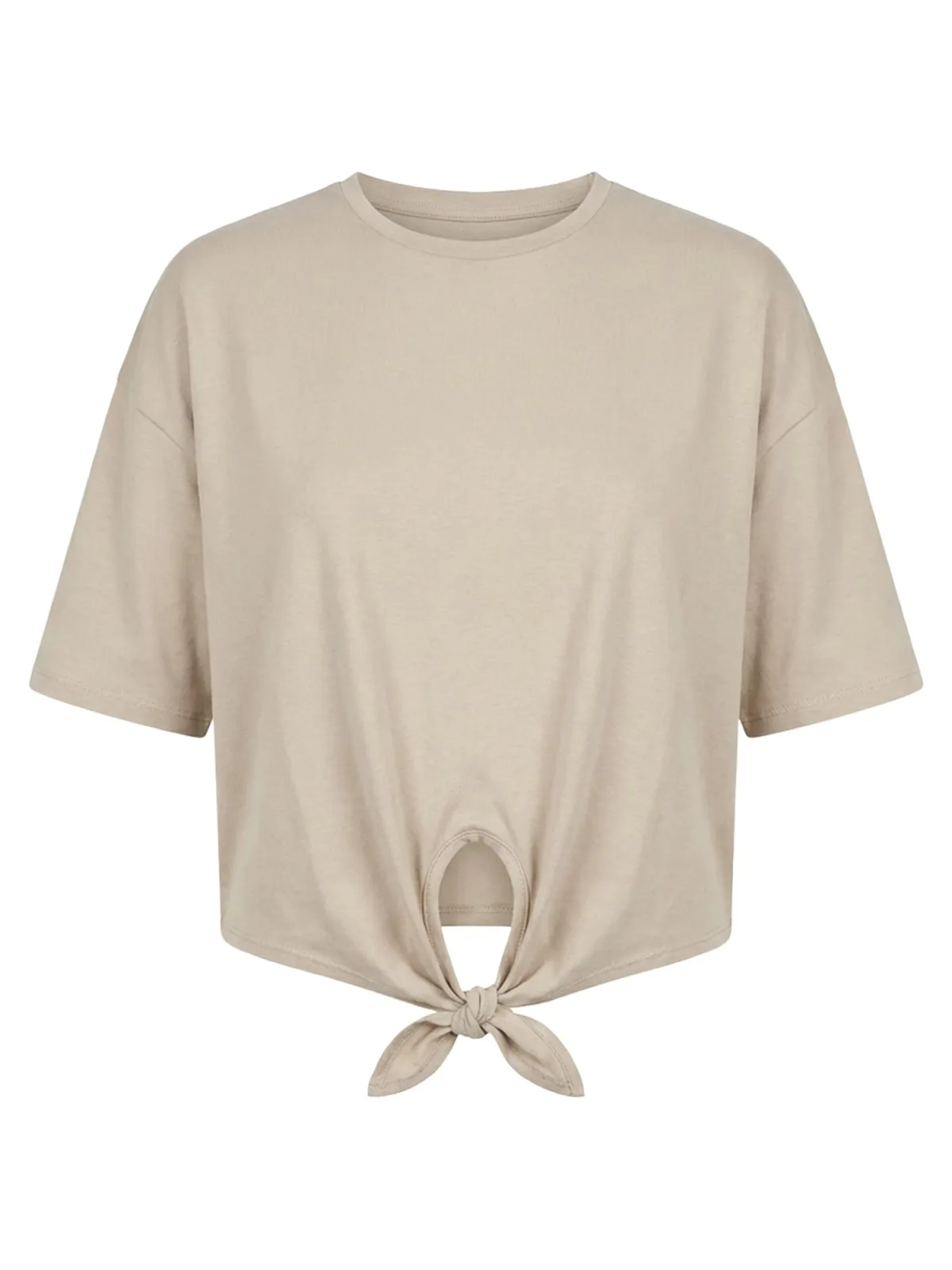 Design: Taille met trekkoord, Overcut schouder; Materiaal: Jersey; Halstype: Ronde hals; Motief: Effen; Details: Cut-outs, Gedrapeerd; Extra's: Op staal naden, Voelt zacht aan; Pasvorm: Normale pasvorm; Armlengte: Kwartmouw; Lengte: Normale lengte