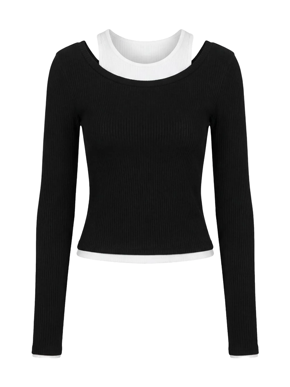 Design: Gevoerde zoom/rand, Gelaagde look, Geribbeld gebreid; Materiaal: Jersey; Halstype: Ronde hals; Motief: Color-Blocking; Extra's: Op staal naden, Voelt zacht aan; Pasvorm: Slanke pasvorm; Armlengte: Lange mouw; Lengte: Normale lengte