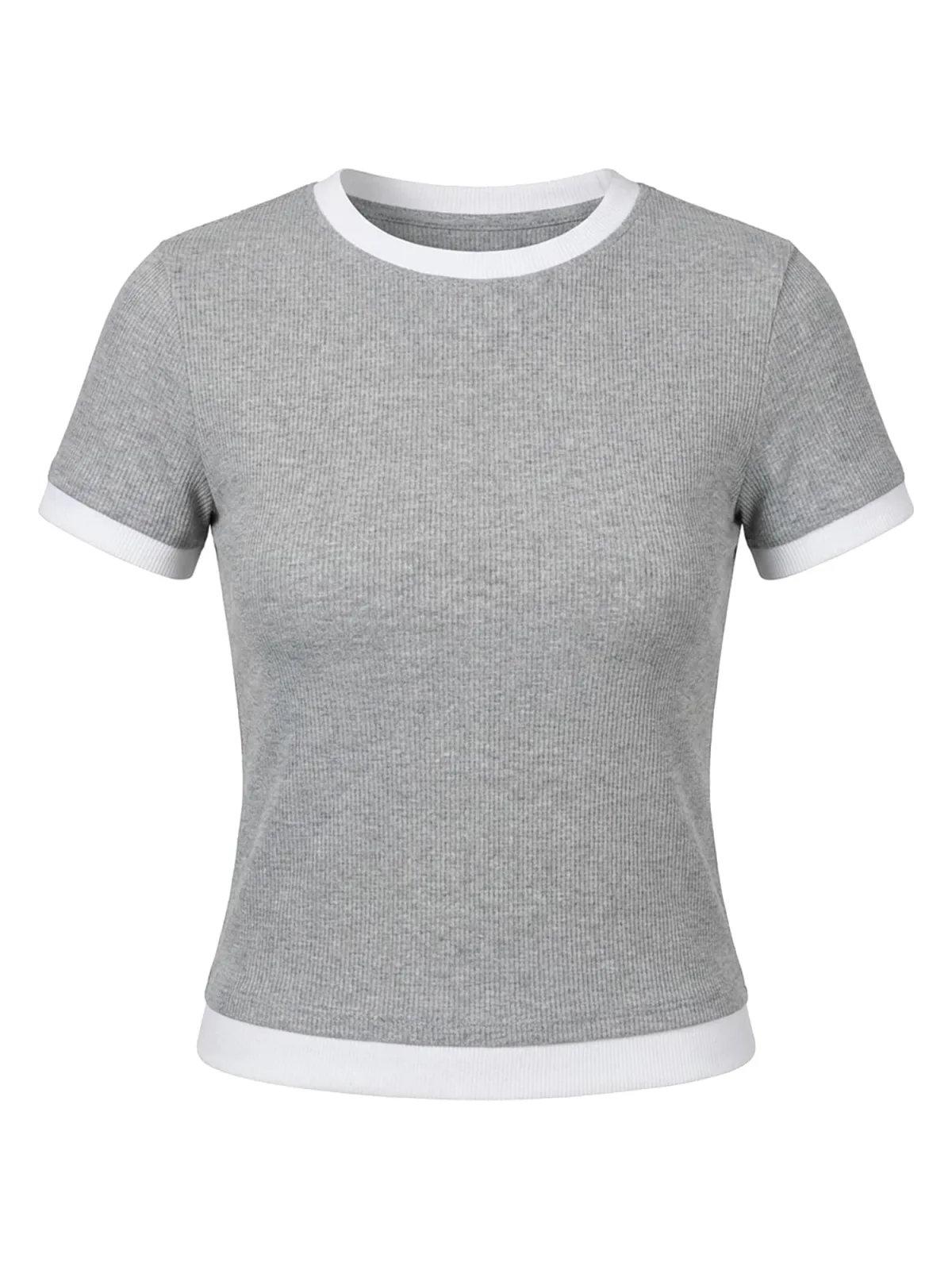 Design: Gevoerde zoom/rand, Rechte zoom; Materiaal: Jersey; Halstype: Ronde hals; Motief: Mélange; Extra's: Op staal naden, Voelt zacht aan; Pasvorm: Aansluitende pasvorm; Armlengte: Kwartmouw; Lengte: Korte pasvorm