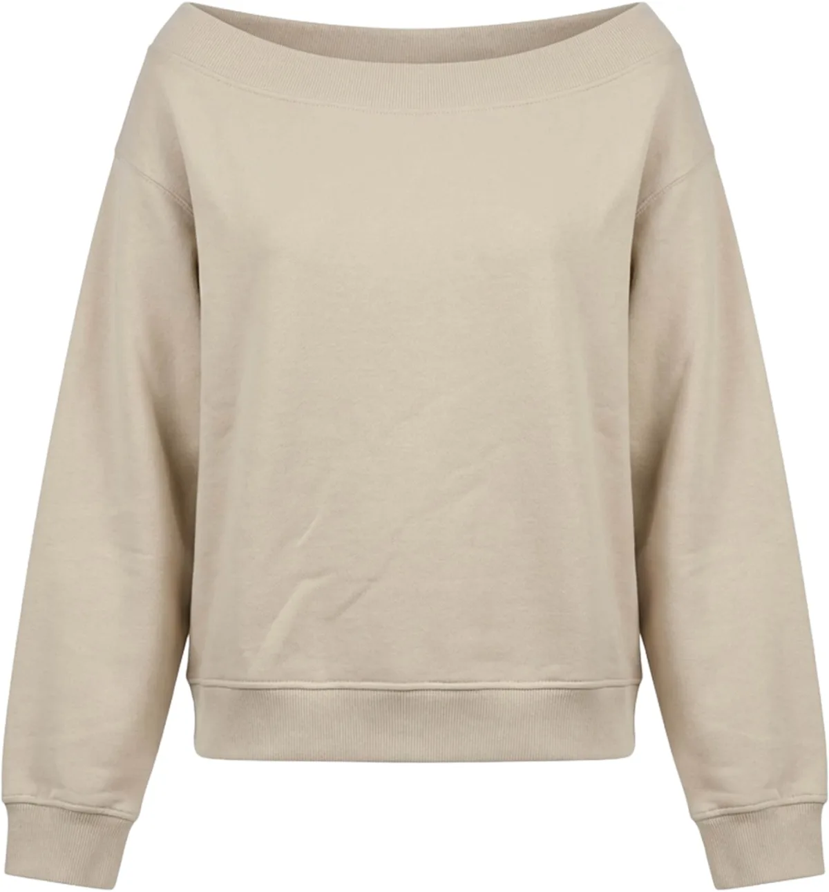 Design: Geribbelde kraag, Rechte zoom, Geribd ceintuurtje, Overcut schouder; Materiaal: Gerecycled materiaal; Halstype: Carmen hals; Motief: Effen; Extra's: Op staal naden, Voelt zacht aan; Pasvorm: Losse pasvorm; Armlengte: Lange mouw; Lengte: Normale lengte